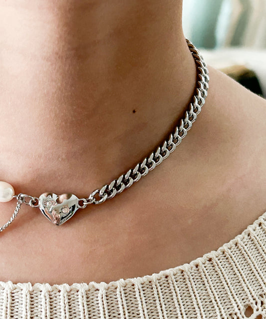 Pearl & Silver Chain Necklace